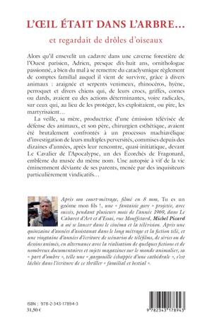 Alors qu'il ensevelit un cadavre dans une caverne forestière de l'Ouest parisien, Adrien, presque dix-huit ans, a bien du mal à se remettre du cataclysmique règlement de comptes familial auquel il vient de survivre, notamment grâce à l'intervention déterminante d'animaux, face aux personnes qui les exploitaient. La veille, sa mère, productrice d'une émission télévisée, et son père, chirurgien esthétique, avaient dû répondre de leurs perversités commises depuis leur rencontre quasi-initiatique devant Le Cavalier de l'Apocalypse, un des Écorchés de Fragonard. Une autopsie à vif de la vie éminemment déviante de ses parents, menée par des inquisiteurs particulièrement vindicatifs...