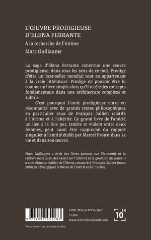 La saga d’Elena Ferrante constitue une œuvre prodigieuse, dans tous les sens de ce mot. Prodige d’être un best-seller mondial tout en appartenant à la vraie littérature. Prodige de pouvoir être lu comme un livre simple alors qu’il recèle des concepts fondamentaux dans une architecture complexe et subtile. C’est pourquoi L’amie prodigieuse entre en résonnance avec de grands textes philosophiques, en particulier ceux de François Jullien relatifs à l’intime et à l’altérité. Ce grand livre de l’amitié, un lien à la fois pur, tendre et violent entre deux femmes, peut aussi être rapproché du rapport singulier à l’amitié établi par Marcel Proust dans sa vie et dans son œuvre.