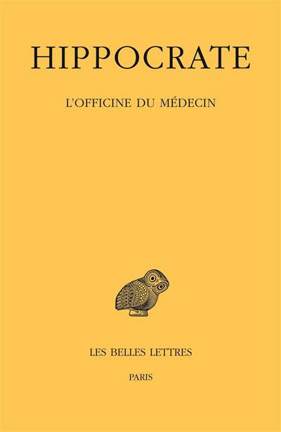 A l'interieur de la Collection hippocratique, le traite intitule Officine du medecin a pour objet d'exposer ce qui se passe a l'interieur du cabinet du medecin qui doit operer un patient dans le cas de blessures, particulierement de fractures ou de luxations. Pour designer le cabinet du medecin, on a conserve le mot traditionnel d' officine , car le cabinet du medecin dans l'Antiquite grecque ne correspond pas exactement a ce que nous entendons actuellement ainsi. La communaute des medecins dans la Grece antique n'etait pas constituee de generalistes et de specialistes, comme c'etait deja le cas en Egypte ancienne, mais tout medecin devait faire des operations et avait donc dans son officine les instruments necessaires pour les realiser. Cela ne signifie pas que les ouvrages de medecine ne pouvaient pas etre specialises. Car dans la Collection hippocratique, il y a deux groupes d'ouvrages specialises, l'un en gynecologie, l'autre en chirurgie. Le traite de l'Officine du medecin appartient au groupe des cinq grands traites chirurgicaux anciens, les quatre autres etant Fractures, Articulations, Mochlique et Blessures de tete. Ce qui distingue ce traite des autres, c'est qu'il ne decrit pas les differentes blessures, fractures et articulations suivant les differentes parties du corps, mais presente, sous forme soit de memento soit d'introduction generale, les differents elements humains ou materiels qui entrent en jeu dans toute operation d'un blesse avant d'en venir dans une seconde partie a une reflexion generale sur ce qui etait considere comme essentiel dans la therapeutique, a savoir les bandages.
