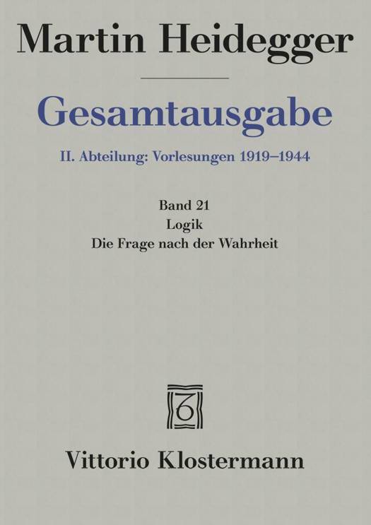 Hier entfaltet Heidegger im Unterschied zur traditionellen Schullogik die Idee einer philosophierenden Logik, bei der die Frage nach der Wahrheit im Mittelpunkt steht. Er geht aus von der Situation der Logik zu Beginn unseres Jahrhunderts, wie sie in Husserls Kritik am Psychologismus ihren Niederschlag findet, fragt zurück nach den Voraussetzungen für diese Kritik und zeigt die Notwendigkeit des Rückganges zu Aristoteles.Im ersten Hauptstück erfolgt die Interpretation der Wahrheitsfrage bei Aristoteles, sie gipfelt in der Interpretation des oft mißverstandenen Kapitels 10 des IX. Buches der "Metaphysik".Das zweite Hauptstück entfaltet ein radikalisiertes Fragen nach der Wahrheit im Lichte der Zeitproblematik, wie sie die Daseinsanalytik ermöglicht. Hier steht die Interpretation der "Kritik der reinen Vernunft" im Zentrum, um aufzuweisen, wie weit Kant im Aufdecken der Zeitproblematik gelangt ist und wo seine Grenzen sind. Diese Interpretation geht in ihrer eindringlichen Ausführlichkeit über den später veröffentlichten Text "Kant und das Problem der Metaphysik" hinaus. Zum Verständnis der Genese von Heideggers Denken ist die Kenntnis dieser Vorlesung unentbehrlich.