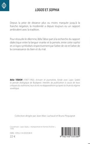 Depuis la prise de distance plus ou moins marquée jusqu'à la franche négation, la modernité a depuis toujours eu un rapport ambivalent avec la tradition. Pour résoudre le dilemme, Béla Tábor part à la recherche du rapport dialectique entre la langue vivante et la pensée, entre cette sophia et ce logos symbolisés respectivement par l'arbre de vie et de l'arbre de la connaissance du bien et du mal.