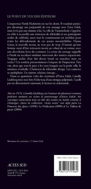 L'inspecteur Patrik Hedström est sur les dents. Il voudrait participer davantage aux préparatifs de son mariage avec Erica Falck, mais il n'a pas une minute à lui. La ville de Tanumshede s'apprête en effet à accueillir une émission de téléréalité et ses participants avides de célébrité, aussi tout le commissariat est mobilisé pour éviter les débordements de ces jeunes incontrôlables. Hanna Kruse, la nouvelle recrue, ne sera pas de trop. D'autant qu'une femme vient d'être retrouvée morte au volant de sa voiture, avec une alcoolémie hors du commun. La scène du carnage rappelle à Patrik un accident similaire intervenu des années auparavant. Tragique redite d'un fait divers banal ou macabre mise en scène ? Un sombre pressentiment s'empare de l'inspecteur. Très vite, alors que tout le pays a les yeux braqués sur la petite ville, la situation s'emballe. L'émission de téléréalité dérape. Les cadavres se multiplient. Un sinistre schéma émerge...