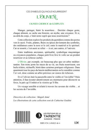 Manger, partager, bénir la nourriture… Derrière chaque geste, chaque aliment, se cache une histoire, un mythe, une croyance. Et si, au-delà du corps, c’était notre esprit que nous nourrissions ? Cette collection explore les produits du quotidien comme des portes vers le sacré. Fruits, plantes, fleurs ou épices deviennent des symboles, des médiateurs entre la terre et le ciel, entre le matériel et le spirituel. Car se nourrir, c’est aussi se relier — à soi, aux autres, à l’univers. Entre traditions anciennes, spiritualité, symbolique maçonnique ou croyances populaires, chaque petit livre lève le voile sur un produit nourricier et sa richesse cachée. L’Olivier, par exemple, est beaucoup plus que cet arbre méditerranéen. Son tronc porte les traces de sa vie, ses fruits nourrissent, son huile éclaire, réchauffe, bénit dans certaines pratiques religieuses. Dans quasiment tous les pays du bassin méditerranéen on le considère comme l’or vert, donc comme un arbre précieux car source de richesses. Et si l’olivier était la passerelle entre le visible et l’invisible ? Mais attention, il faut écouter attentivement ses murmures pour découvrir sa force, la paix qu’il induit et la victoire qu’il fête. Un voyage sensible et éclairé à travers les saveurs du visible… et les secrets de l’invisible.