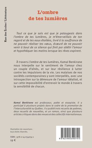 À travers L'ombre de tes lumières, Kamal Benkirane nous interpelle sur le sentiment de l'amour chez un couple d'aînés, et sur leur résilience à lutter contre les impulsions de la vie. Les malaises de nos sociétés contemporaines y sont interpellés, avec une introspection sur la démesure de l'amour idéalisé, et sur cette impossibilité d'entrevoir le monde à travers la sensibilité de chacun.