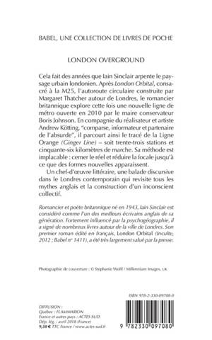 Cela fait des années que Iain Sinclair arpente le paysage urbain londonien. Après «London Orbital», consacré à la M25, l'autoroute circulaire construite par Margaret Thatcher autour de Londres, le romancier britannique explore cette fois une nouvelle ligne de métro ouverte en 2010 par le maire conservateur Boris Johnson. En compagnie du réalisateur et artiste Andrew Kötting, "comparse, informateur et partenaire de l'absurde", il parcourt ainsi le tracé de la Ligne Orange «(Ginger Line) »- soit trente-trois stations et cinquante-six kilomètres de marche. Sa méthode est implacable : cerner le réel et réduire la focale jusqu'à ce que des formes nouvelles apparaissent.