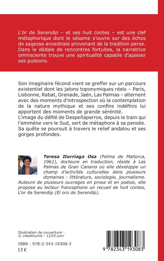 L'or de Serendip et ses huit contes est une clef métaphorique dont le sésame s'ouvre sur des échos de sagesse ancestrale provenant de la tradition perse. Dans le dédale de rencontres fortuites, la narratrice omnisciente trouve une spiritualité capable d'apaiser ses pulsions. L'image du défilé de Despeñaperros, depuis le train qui l'emmène vers le Sud, sert de métaphore à sa pensée. Sa quête se poursuit à travers le relief andalou et ses gorges profondes.