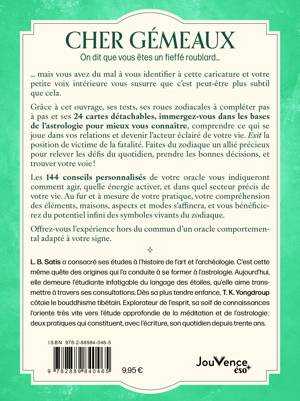 Grâce à cet ouvrage, ses tests, ses roues zodiacales à compléter pas à pas et ses 24 cartes détachables, offrez-vous l’expérience hors du commun d’un oracle comportemental adapté à votre signe. Éléments, maisons, aspects, modes… immergez-vous dans les bases de l’astrologie pour mieux vous connaître, comprendre ce qui se joue dans vos relations et devenir l’acteur éclairé de votre vie. Exit la position de victime de la fatalité, découvrez votre place au cœur du Zodiaque, et faites de l’astrologie une alliée précieuse pour relever les défis du quotidien et prendre les bonnes décisions.