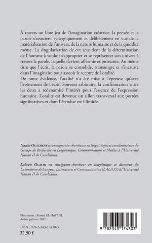 Toute langue véhicule une culture traditionnelle qui diffère d'une région à l'autre. Elle est le vernaculaire d'une littérature orale très riche représentée par les genres classiques prosaïques et poétiques. La parole permet à l'homme de s'approprier et de se représenter son univers. Au même titre que l'écrit, la parole se consolide, transmigre et s'incruste dans l'imaginaire pour asseoir le sceptre de l'oralité. Souvent arbitraire, la confrontation entre l'écrit et l'oral a redynamisé l'intérêt pour l'essence de l'expression humaine. Les contributions contenues dans ce livre tentent de cerner en partie le concept de l'oralité à travers contes, chansons, devinettes, poésie, aphorismes, littérature et chant.