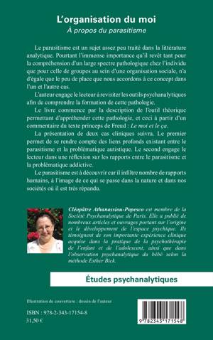 Le parasitisme est un sujet assez peu traité dans la littérature analytique. Pourtant l'immense importance qu'il revêt tant pour la compréhension d'un large spectre pathologique chez l'individu que pour celle de groupes au sein d'une organisation sociale, n'a d'égale que le peu de place que nous accordons à ce concept dans l'un et l'autre cas. L'auteur engage le lecteur à revisiter les outils psychanalytiques afin de comprendre la formation de cette pathologie. Le livre commence par la description de l'outil théorique permettant d'appréhender cette pathologie, et ceci à partir d'un commentaire du texte princeps de Freud : Le moi et le ça. La présentation de deux cas cliniques suivra.