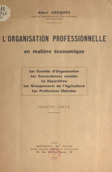 Les Comités d'Organisation. Les Concordances sociales. La Répartition. Les Groupements de l'Agriculture. Les Professions libérales