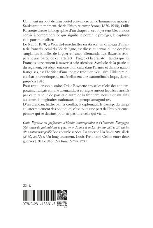 Pour restituer son histoire, Odile Roynette croise les récits des contemporains, français comme allemands, et consigne surtout les désirs suscités par cette relique de part et d’autre de la frontière, nous menant ainsi au coeur d’imaginaires nationaux longtemps antagonistes. D’un drapeau, haché par les conflits, la diplomatie, le passage du temps et l’atermoiement des politiques, c’est toute une part de l’histoire européenne qui se dessine, pour ne pas dire celle qui vient.