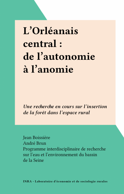 L'Orléanais central : de l'autonomie à l'anomie E-BOOK