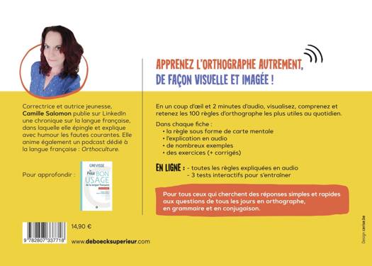 En un coup d’œil et 2 minutes d’audio, visualisez, comprenez et retenez les 100 règles d’orthographe les plus utiles au quotidien.
