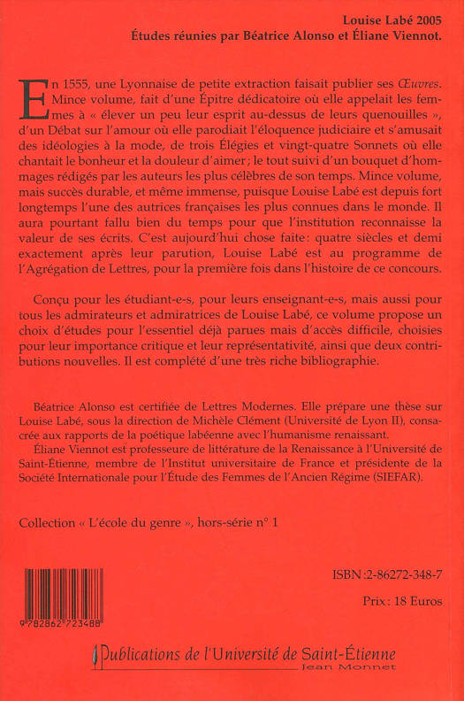 Réunit une vingtaine d'études choisies pour leur importance critique et leur représentativité et offrant une vue d'ensemble sur l'oeuvre labéenne. Au programme de l'agrégation de lettres 2005.