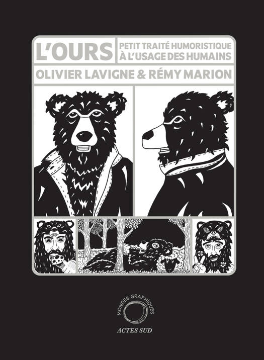 C'est l'illustrateur Olivier Lavigne qui a eu envie de travailler à partir du livre de Rémy Marion L'Ours, l'autre de l'homme paru en 2018 dans la collection "Mondes sauvages". Les présentations faites, l'humour potache des dessins du premier a admirablement rencontré celui du second, jamais en reste pour écorner les nombreuses idées reçues concernant son animal de prédilection, l'ours brun, qui cohabite tant bien que mal avec les humains depuis la préhistoire à travers tout l'hémisphère nord. Les petits textes iconoclastes, bienveillants ou parfois rageurs révèlent ainsi tout ce que vous n'avez jamais osé demander sur la vie des ours et leurs rapports aux bipèdes humains à travers les millénaires : le régime alimentaire et la digestion, l'âge des cavernes, le rôle de l'ours dans la forêt, les amours ursines et le kamasoutra des ours, l'enfance et l'adolescence, le langage, la diversité des espèces, la chasse à l'ours, les mythologies et les religions, les jeux du cirque et les zoos, les incroyables découvertes scientifiques concernant sa physiologie, etc. En contrepoint, les dessins façon gravure en noir et blanc détournent à leur tour notre histoire culturelle et artistique, entremêlant pour notre plus grand bonheur de nombreuses références à l'actualité. Un livre à mettre entre toutes les mains pour inaugurer en beauté cette nouvelle collection d'essais graphiques ,"Mondes graphiques" !