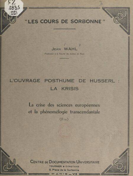 5. L'ouvrage posthume de Husserl : La Krisis : la crise des sciences européennes et la phénoménologie transcendantale (Fin)