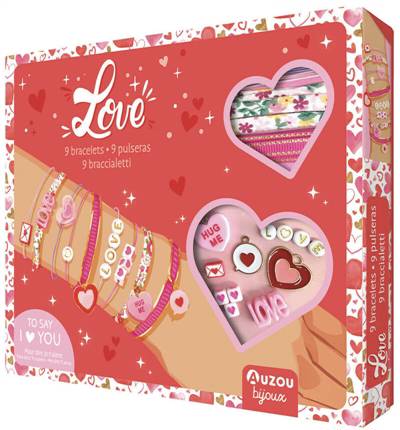 Un coffret plein de tendresse et pétillant pour dire "Je t'aime' en bijoux ! Un coffret plein de tendresse et pétillant pour dire "Je t'aime' en bijoux ! 9 bracelets à créer, porter, offrir... pour célébrer l'amour et l'amitié !