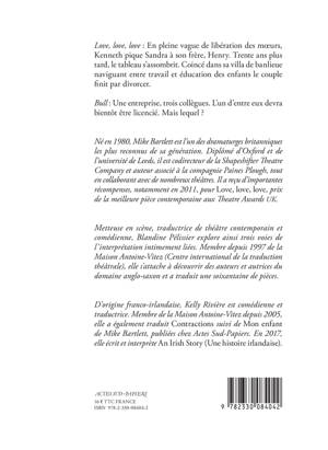 «Love, love, love» : En pleine vague de libération des moeurs, Kennneth pique Sandra à son frère, Henry. Trente ans plus tard, le tableau s'assombrit. Coincé dans sa villa de banlieue, naviguant entre travail et éducation des enfants, le couple va divorcer.
