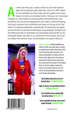 Al meer dan tien jaar is Japke-d. Bouma voor elke kantoortijger dé onvolprezen gids. Met haar column in nrc steekt ze ons wekelijks een hart onder de riem, geeft ze ons wijze lessen en laat ze ons hardop lachen. Hoe ga je om met jonge collega's, en wat moeten zij met die gekke kantoorboomers, hoe overleef je een functioneringsgesprek, hoe regel je salarisverhoging, hoe laat je anderen het vervelende werk doen en hoe ga je om met wéér zo'n slaapverwekkende vergadering? De beste tips, de ergste kantoorclichés, de grappigste verhalen over de koffieautomaat en de flexplek, de jeukerigste jeukwoorden en de handigste lijstjes. Dat alles is nu verzameld in één bundel, #lovemyjob, een even onmisbaar als hilarisch boek: het állerbeste van Japke-d. Bouma.