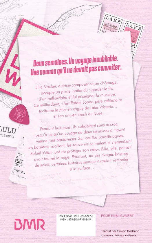 Deux semaines. Un voyage inoubliable. Une nounou qu’il ne devrait pas convoiter. Ellie Sinclair, autrice-compositrice au chômage, accepte un poste inattendu : garder le fils d’un milliardaire et lui enseigner la musique. Ce milliardaire, c’est Rafael Lopez, père célibataire taciturne le plus en vogue de Lake Wisteria … et son ancien crush du lycée. Pendant huit mois, ils cohabitent sans accroc, jusqu'à ce qu'un voyage de deux semaines à Hawaï vienne tout bouleverser. Sur ces îles paradisiaques, les barrières vacillent, les souvenirs se mêlent et s’emmêlent. Rafael s’était juré de protéger son cœur. Ellie, elle, pensait avoir tourné la page. Pourtant, sur ces rivages baignés de soleil, certaines histoires semblent vouloir remonter à la surface…
