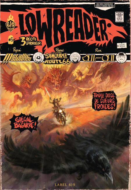 LowReader est une série d'anthologie d'histoires courtes de suspense, d'horreur et d'exploitation, dirigée par Run. Chaque numéro propose trois histoires complètes. Suivez le corbeau !• RUN • Sylvain Repos • Baptiste Pagani