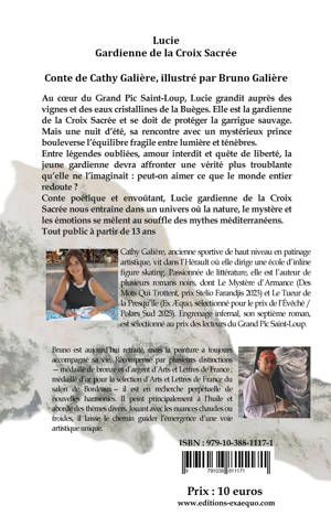 Au coeur du Grand Pic Saint-Loup, Lucie veille sur la Croix Sacrée et protège la garrigue sauvage. Mais sa rencontre avec un mystérieux prince bouleverse l’équilibre entre lumière et ténèbres. Entre légendes, amour interdit et quête de liberté, il lui faut affronter une vérité troublante. Un conte inspiré des mythes méditerranéens.