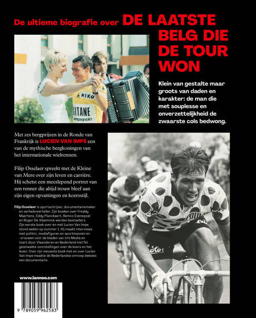 Met zes bergtruien in de Ronde van Frankrijk is Lucien Van Impe een van de mythische bergkoningen van het internationale wielrennen. Filip Osselaer spreekt met de Kleine van Mere over zijn leven en carrière. Hij schetst een meeslepend portret van een renner die altijd trouw bleef aan zijn eigen opvattingen en koersstijl.