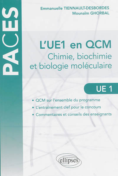 Cet ouvrage d'auto-évaluation est destiné aux étudiants qui préparent le concours de la PACES mais également aux étudiants du premier cycle des sciences de la vie et des classes préparatoires. Il aborde les notions fondamentales développées dans l’unité d’enseignement UE1 de la PACES : composition de la matière, chimie organique, biomolécules, bioénergétique et génome.