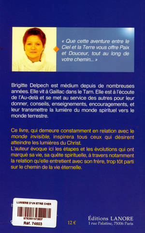 Ce livre, qui demeure constamment en relation avec le monde invisible, inspirera tous ceux qui désirent atteindre les lumières du Christ. L'auteur évoque ici les étapes et les évolutions qui ont marqué sa vie, sa quête spirituelle, à travers notamment la relation qu'elle entretient avec son frère, trop tôt parti sur le chemin de la vie éternelle.