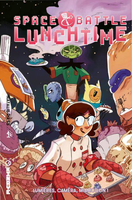Space Battle Lunchtime est un show culinaire ultra populaire diffusé jusqu’aux confins de l’univers et sa nouvelle saison est sur le point de commencer ! Quand l’un des chefs sélectionnés jette l’éponge à la dernière minute, une apprentie pâtissière terrienne, Peony, se voit offrir la chance de le remplacer et de concourir pour la notoriété, la gloire et un prix de 20 000 Solarbucks. Elle doit simplement impressionner les juges aliens et battre les cinq autres chefs sélectionnés (aussi des aliens !) : la mystérieuse Neptunia, le sournois Melonhead, l’intimidant Jacques, la féroce Owline, et le robuste Meatabax. Coincée entre des concurrents déloyaux et des ingrédients inconnus, Peony va devoir tout donner. Est-elle prête à surmonter le monde impitoyable de la cuisine intergalactique, ou s’est-elle surestimée ?
