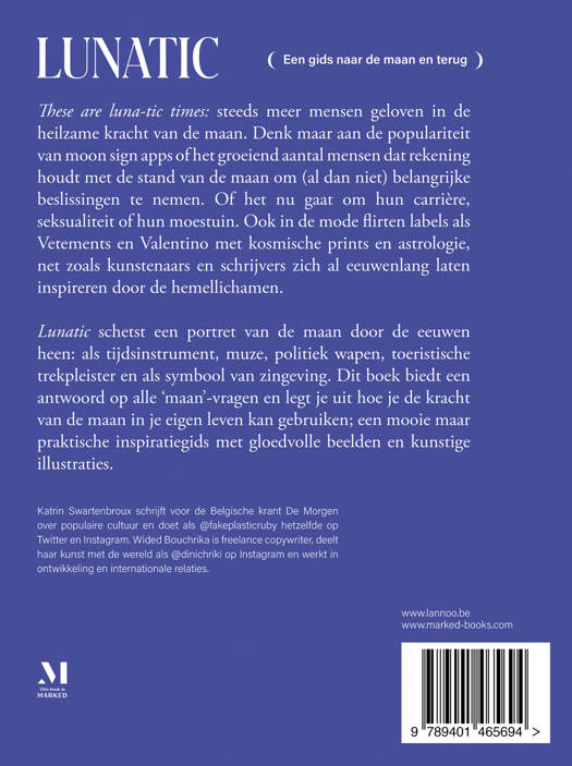 Lunatic schetst een portret van de maan door de eeuwen heen: als tijdsinstrument, muze, politiek wapen, toeristische trekpleister en als symbool van zingeving. Dit boek biedt een antwoord op alle 'maan'-vragen en legt je uit hoe je de kracht van de maan in je eigen leven kan gebruiken; een mooie maar praktische inspiratiegids met gloedvolle beelden en kunstige illustraties.