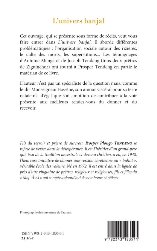 Cet ouvrage, qui se présente sous forme de récits, veut vous faire entrer dans l'univers banjal. Il aborde différentes problématiques : l'organisation sociale autour des rizières, le culte des morts, les superstitions... Les témoignages d'Antoine Manga et de Joseph Tendeng (tous deux prêtres de Ziguinchor) ont fourni à Prosper Tendeng en partie le matériau de ce livre.