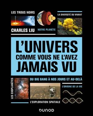 Spectaculaire périple à la découverte du cosmos, L’Univers comme vous ne l’avez jamais vu raconte la naissance et l’évolution de l'Univers, du Big Bang à nos jours et au-delà. Étape par étape, Charles Liu retrace l’histoire de l’espace et du temps depuis les premiers instants après le Big Bang jusqu’à la création de notre Système solaire, l’apparition de la vie sur Terre, son peuplement, la naissance des civilisations et l’essor de la science et des technologies. La flèche du temps, qui court de page en page, vous donne des repères tout au long de ce voyage initiatique, illustré par des images saisissantes. Une chronologie fascinante de l’Univers en expansion et de notre place dans cette histoire !