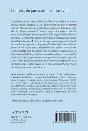 Le jaïnisme est peu connu en dehors de l'Inde. Cette religion de la non-violence absolue (ahimsa) en son développement ascétique est pourtant l'une des plus anciennes au monde. Contemporaine du bouddhisme mais dont les préceptes remontent à l'aube des temps, elle a toujours cultivé un mode de vie écologique qui est aujourd'hui celui de près de dix millions de personnes. On connaît par ailleurs le rôle central de l'ahimsa dans l'action du mahatma Gandhi. À l'heure où pèse une menace sans précédent sur de très nombreuses espèces et sur la planète elle-même, le jaïnisme a plus que jamais un rôle à jouer dans la redéfinition de nos rapports avec le vivant. Michael Tobias, dont la rencontre avec le jaïnisme a changé la vie, en expose avec empathie les principaux tenants et aboutissants via une synthèse et mise en perspective passionnées, servies par un style imagé et captivant. Dans ce livre qui procède également d'une connaissance approfondie de la spiritualité jaïna, l'auteur appelle de ses voeux l'avènement d'une écologie spirituelle fondée sur le respect de la vie.