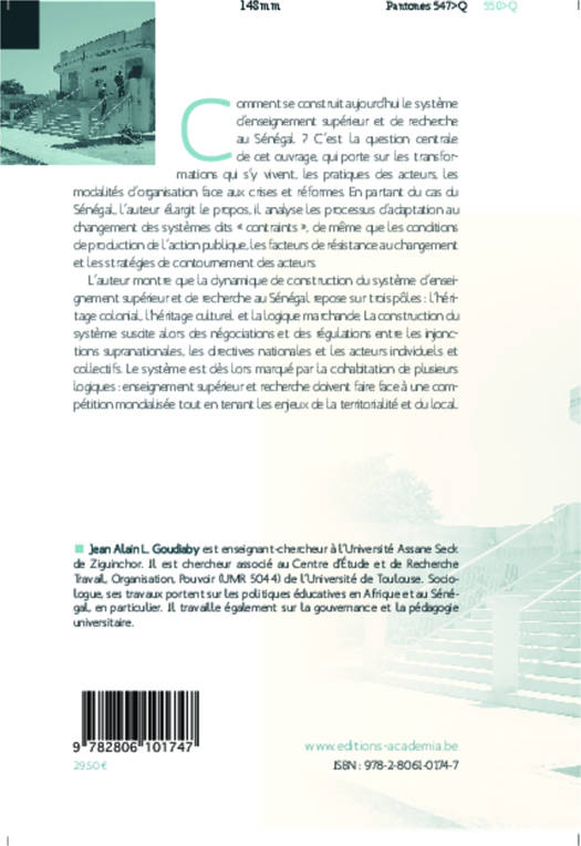 Comment se construit aujourd'hui le système d'enseignement supérieur et de recherche au Sénégal ? C'est la question centrale de cet ouvrage, qui porte sur ses transformations, les pratiques des acteurs, les modalités d'organisation face aux crises et réformes. En partant du cas du Sénégal, l'auteur élargit le propos, analyse les processus d'adaptation au changement des systèmes dits « contraints », les conditions de production de l'action publique ou les facteurs de résistance au changement...
