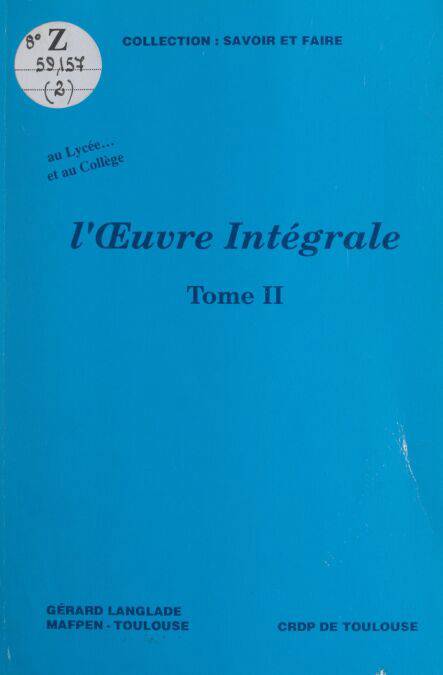 Ce second tome de l’« Œuvre intégrale » prolonge, par de nouveaux exemples, la démarche mise au point et explicitée dans le précédent ouvrage. Quinze séquences pédagogiques présentent, en comptes rendus concrets d'expériences de classe, l'étude de quinze œuvres lues à tous les niveaux du collège et du lycée. Tous les genres (contes, romans, nouvelles, théâtre, poésie), tous les registres (comique, lyrique, réaliste, fantastique), tous les siècles du XVIIe au XXe siècle, sont ici représentés pour offrir des illustrations variées d'un dispositif cohérent.