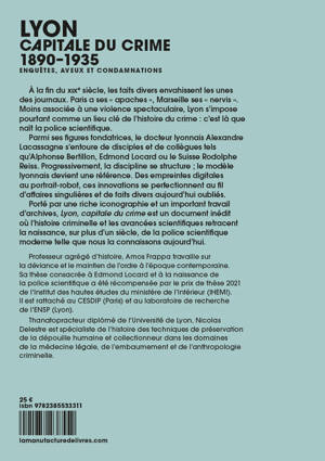 Porté par une riche iconographie et un important travail d'archives, Lyon, capitale du crime est un document inédit où l'histoire criminelle et les avancées scientifiques retracent la naissance, sur plus d’un siècle, de la police scientifique moderne telle que nous la connaissons aujourd'hui.