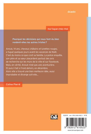 Quelques jours avant Noël, suite à une séance d'humiliation au collège, et à l'annonce que sa mère, une fois de plus, ne sera pas là pour les fêtes, Anouk décide de fuguer. Mais après une demi-journée dehors, elle rentre... et va se cacher dans le grenier. Clandestine chez elle pendant deux semaines, elle va finir par renouer avec les siens, le temps que chacun dise son inquiétude et son amour. Un roman au sujet original, pour les jeunes adolescents.