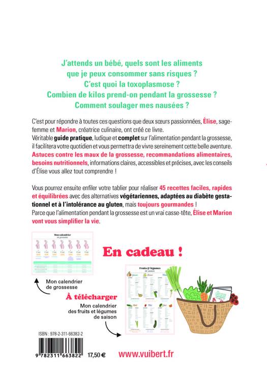 En plus des conseils adaptés d'une sage-femme en relation quotidienne avec des femmes enceintes, ce livre tout en couleurs propose 45 recettes équilibrées et gourmandes pour les 4 saisons, adaptées à tous les modes d’alimentation (végétarien, sans gluten, IG bas…) et joliment illustrées.