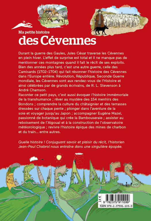 Durant la guerre des Gaules, Jules César traverse les Cévennes en plein hiver. L’effet de surprise est total et il ne manque pas de mentionner ces montagnes quand il fait le récit de ses exploits. Bien des années plus tard, c’est une autre guerre, celle des Camisards (1702-1704) qui fait résonner l’histoire des Cévennes dans l’Europe entière. Révolution, République, Seconde Guerre mondiale, les Cévennes sont aux rendez-vous de l’Histoire et ainsi célébrées par de grands écrivains, de R. L. Stevenson à André Chamson. Raconter ce petit pays, c’est aussi évoquer l’histoire immémoriale de la transhumance ; rêver au mystère des 154 menhirs des Bondons ; comprendre la culture du châtaignier et des terrasses dressées sur chaque pente ; plonger dans l’aventure de la soie et voyager jusqu’au Japon ; accompagner Eugène Mazel, passionné de botanique qui crée la Bambouseraie ; assister au reboisement de l’Aigoual et à la construction de l’observatoire météorologique ; revivre l’histoire épique des mines de charbon et du train… entre autres.