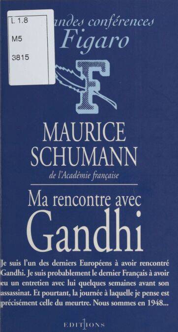 Fin 1947, quelques jours après l’indépendance de l’Inde, Maurice Schumann, alors parlementaire, est chargé par le président du Conseil de négocier le sort des cinq comptoirs français en Inde. Dans les bouleversements que connaît l’Inde de l’époque, il obtient une entrevue avec le Mahatma Gandhi. C’est le témoignage de cette fascinante rencontre qu’il nous livre ici. C’est aussi l’occasion pour Maurice Schumann, sénateur, ancien ministre, d’évoquer les transformations de la plus grande démocratie du monde et de relater ses rencontres avec les artisans de l’Inde moderne, tels Indira Gandhi ou Sri Aurobindo.