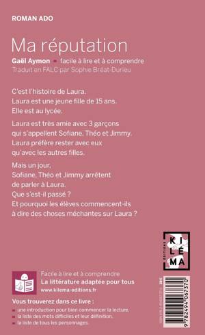 UN LIVRE FACILE À LIRE ET À COMPRENDREC’est l’histoire de Laura.Laura est une jeune fille de 15 ans.Elle est au lycée.Laura est très amie avec 3 garçonsqui s’appellent Sofiane, Théo et Jimmy.Laura préfère rester avec euxqu’avec les autres filles.Mais un jour,Sofiane, Théo et Jimmy arrêtentde parler à Laura.Que s’est-il passé ?Et pourquoi les élèves commencent-ilsà dire des choses méchantes sur Laura ?