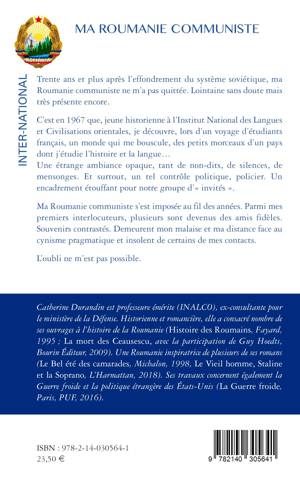 Trente ans et plus après l'effondrement du système soviétique, ma Roumanie communiste ne m'a pas quittée. Lointaine sans doute mais très présente encore. C'est en 1967 que, jeune historienne à l'Institut National des Langues et Civilisations orientales, je découvre, lors d'un voyage d'étudiants français, un monde qui me bouscule, des petits morceaux d'un pays dont j'étudie l'histoire et la langue… Une étrange ambiance opaque, tant de non-dits, de silences, de mensonges. Et surtout, un tel contrôle politique, policier. Un encadrement étouffant pour notre groupe d'« invités ». Ma Roumanie communiste s'est imposée au fil des années. Parmi mes premiers interlocuteurs, plusieurs sont devenus des amis fidèles. Souvenirs contrastés. Demeurent mon malaise et ma distance face au cynisme pragmatique et insolent de certains de mes contacts. L'oubli ne m'est pas possible.