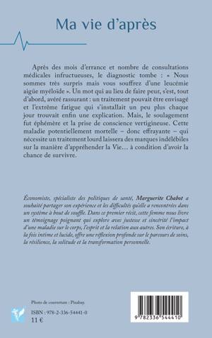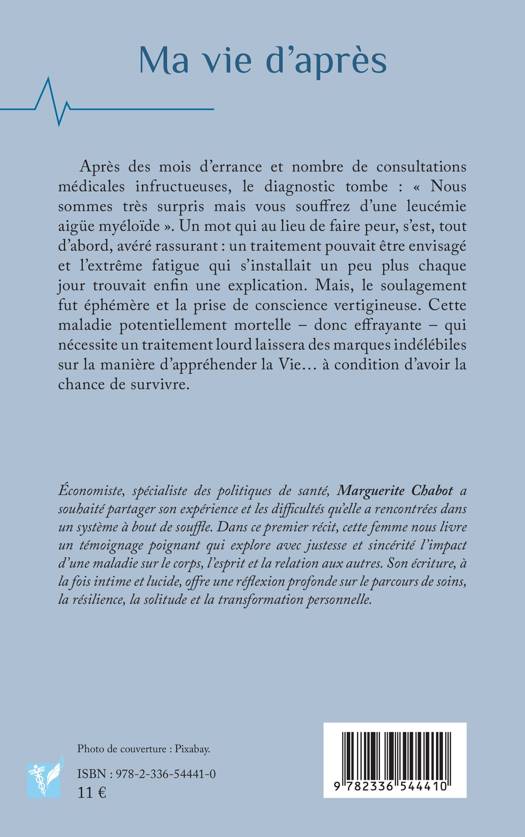 Après des mois d'errance et nombre de consultations médicales infructueuses, le diagnostic tombe: Nous sommes très surpris mais vous souffrez d'une leucémie aigüe myéloïde . Un mot qui au lieu de faire peur, s'est, tout d'abord, avéré rassurant: un traitement pouvait être envisagé et l'extrême fatigue qui s'installait un peu plus chaque jour trouvait enfin une explication. Mais, le soulagement fut éphémère et la prise de conscience vertigineuse. Cette maladie potentiellement mortelle - donc effrayante - qui nécessite un traitement lourd laissera des marques indélébiles sur la manière d'appréhender la Vie... à condition d'avoir la chance de survivre.