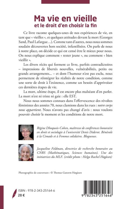 Ce livre raconte quelques-unes de nos expériences de vie, en tant que « vieilles », et quelques attitudes devant la mort (GeorgesSand, Paul Lafargue). Comme tant d’autres, nous nous sommes soudain découvertes hors société, infantilisées. On parle de nous à notre place, on décide ce qui est censé être le mieux pour nous. On nous explique comment « rester jeune », ou comment « bien vieillir ».Les divers récits qui forment ce livre, parfois contradictoires, impressions de libertés nouvelles, vulnérabilités, petits ou grands arrangements... et dont l’humour n’est pas exclu, nous permettent de réintégrer les réalités de notre condition, comme une sorte de droit à l’existence, comme un besoin d’apprivoiser ces dernières étapes de vie. La mort, ultime étape, il est encore plus malséant d’en parler.La mort n’est ni triste ni gaie : elle EST.Nous nous sommes connues dans l’effervescence des révoltes féministes des années 70, nous clamions dans les rues : notre corp snous appartient. Nous n’avons pas changé d’avis : nous voulons pouvoir choisir le moment et les conditions de notre mort.