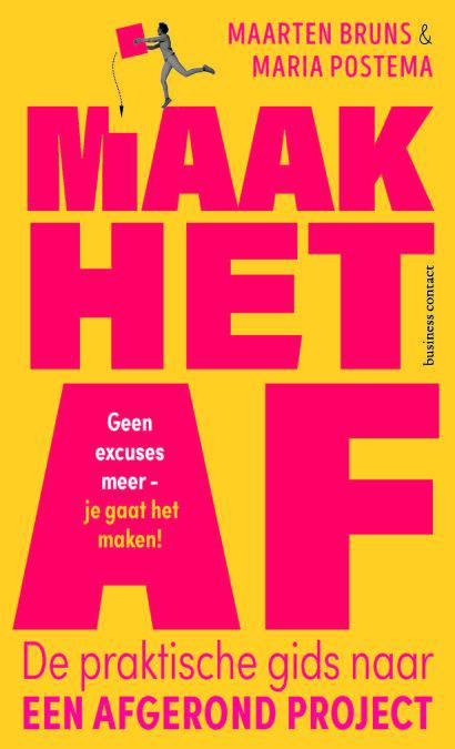 Iedereen heeft er wel een: zo'n project dat aan je knaagt en dat je eigenlijk heel graag zou willen maken, maar waar je steeds niet aan toekomt. Vaak zijn het dingen die je 'altijd nog zou willen doen'. Een boek schrijven. Zelf een fiets bouwen. Eindelijk die droomkeuken realiseren. Soms zijn het ook projecten die gewoon af moeten en waar je als een berg tegenop ziet. Je scriptie. Die fotoboeken van de afgelopen vijf jaar. Zou het niet fijn zijn om niet meer gefrustreerd te ploeteren, maar eindelijk het resultaat in handen te hebben? Maak het af is hét boek om je daarbij te helpen. Doorgewinterde makers Maarten Bruns en Maria Postema leerden the hard way hoe ze alle hobbels en hindernissen moesten nemen die een concreet eindproduct in de weg staan, en ze gunnen anderen een kortere route. Daarom combineerden ze hun eigen lessen met die van onderzoekers en andere inspirerende makers tot een compact stappenplan waarmee je elk project afkrijgt. Een praktische gids met aandacht voor motivatie, inspiratie, vaardigheden, valkuilen, met tips en tricks om te beginnen, vol te houden én af te maken. Vanaf nu is er geen excuus meer om jouw project te laten liggen. Je gaat het maken!