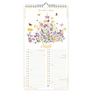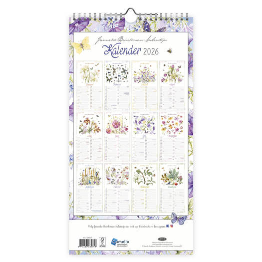 Deze stijlvolle maandnotitiekalender van Janneke Brinkman-Salentijn is inclusief alle Nederlandse en Belgische feest- en vakantiedagen. De kalender geeft een overzichtelijke planning voor de hele maand. Deze kalender staat vol met tekeningen van Janneke Brinkman. Al meer dan 25 jaar maakt zij iedere maand een nieuwe aquarel van bloemen die haar op dat moment inspireren.