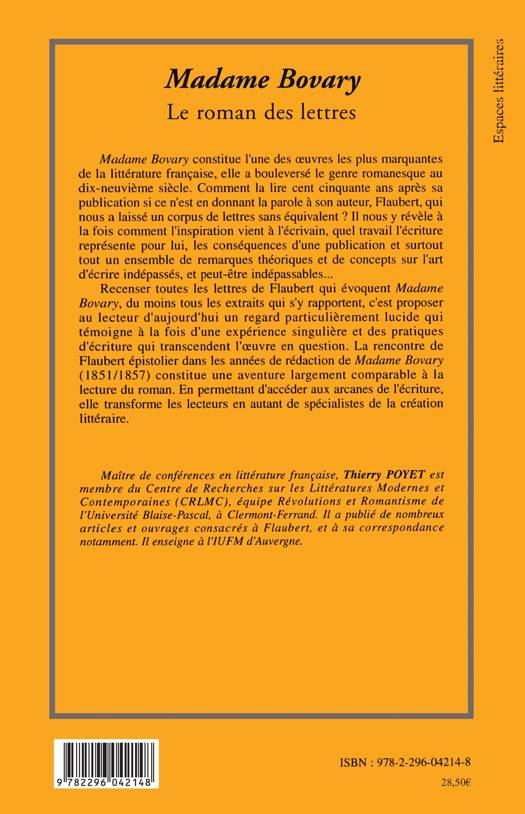 Madame Bovary constitue l'une des oeuvres les plus marquantes de la littérature française, elle a bouleversé le genre romanesque au dix-neuvième siècle. Comment la lire cent cinquante ans après sa publication si ce n'est en donnant la parole à son auteur, Flaubert, qui nous a laissé un corpus de lettres sans équivalent ?