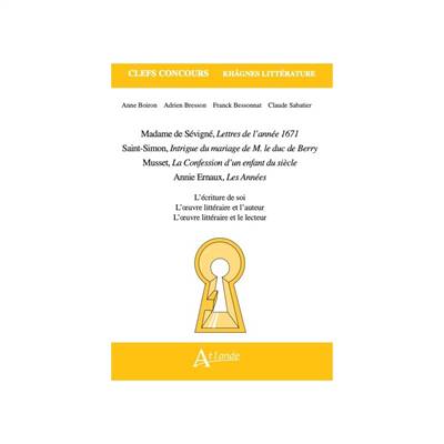 Madame de Sévigné, Lettres de l'année 1671 ; Saint-Simon, Intrigue du mariage de M. le duc de Berry ; Musset, La confession d'un enfant du siècle ; Annie Ernaux, Les années