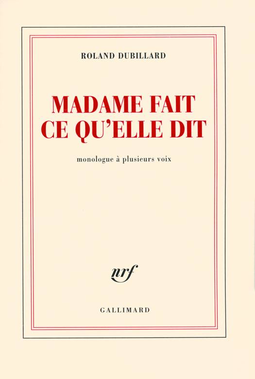 "Je suis un handicapé de naissance. Madame est une tentative pour élucider mon histoire personnelle dans un monde hostile, un essai pour exister encore après mon accident vasculaire cérébral." Roland Dubillard.